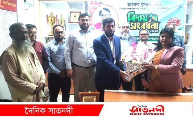 জি এম মুজিবুর রহমান, আশাশুনি (সাতক্ষীরা) ঃ আশাশুনি উপজেলা নির্বাহী অফিসার কৃষ্ণা রায়কে বদলিজনিত বিদায় সংবর্ধনা প্রদান করা হয়েছে। রবিবার বেলা ১১.৩০ টায় উপজেলা নির্বাহী অফিসারের কার্যালয়ে এ সংবর্ধনা সভার আয়োজন করা হয়।