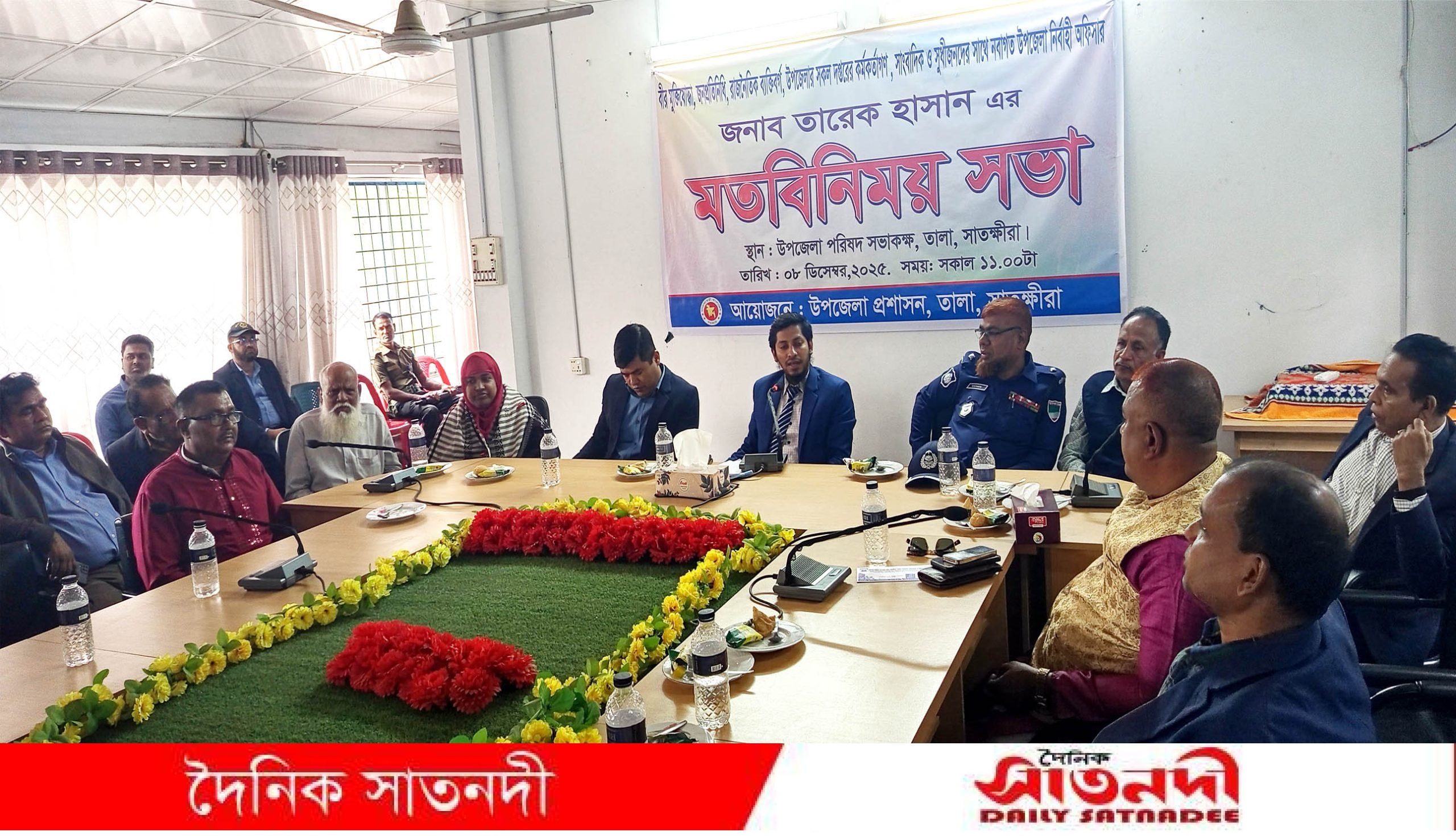 মত বিনিময়কালে উপজেলা নির্বাহী অফিসার ও উপজেলা পরিষদ প্রশাসক তারেক হাসানের সভাপতিত্বে বক্তব্য রাখেন উপজেলা সহকারী কমিশনার (ভূমি) রাহাত খান, তালা থানার পুলিশ পরিদর্শক (তদন্ত) সাখাওয়াত হোসেন, তালা উপজেলা বিএনপির সাবেক সভাপতি মৃণাল কান্তি রায়,সাধারণ সম্পাদক অধ্যক্ষ শফিকুল ইসলাম শফি, সাতক্ষীরা জেলা জামায়াতে ইসলামীর নায়েবে আমীর আলহাজ¦ ডা. মাহামুদুল হক, তালা উপজেলা শাখার আমীর মাওলানা মফিদুল্লাহ, সেক্রেটারী অধ্যাপক ইদ্রিস আলী, তালা উপজেলা মুক্তিযোদ্ধা সংসদের আহবায়ক বীরমুক্তিযোদ্ধা মফিজ উদ্দীন, বীর মুক্তিযোদ্ধা আলাউদ্দীন, তালা প্রেসক্লাবের সভাপতি সাংবাদিক এস.এম নজরুল ইসলাম,সি.সহ-সভাপতি সাংবাদিক এস.এম জাহাঙ্গীর হাসান,সাধারণ সম্পাদক শেখ জলিল আহমেদ, তালা উপজেলা বিএনপির সাবেক যুগ্ম-সাধারণ সম্পাদক সহযোগী অধ্যাপক মোশাররফ হোসেন,তালা মহিলা কলেজের সাবেক অধ্যক্ষ আব্দুর রহমান, তালা মুক্তিযোদ্ধা মহাবিদ্যালয়ের অধ্যক্ষ এনামুল হক, তালা ব্রজেন দে সরকারী উচ্চ বিদ্যালয়ের প্রধান শিক্ষক অজয় কুমার দত্ত,তালা উপজেলা ফায়ার সার্ভিস স্টেশন অফিসার সরদার আব্দুল হান্নান,তালা উপজেলা যুবদলের আহবায়ক মির্জা আতিয়ার রহমান, সি.যুগ্ম-সাধারণ সম্পাদক সাইদুর রহমান সাইদ,তালা উপজেলা প্রেসক্লাবের সভাপতি আকবর হোসেন।