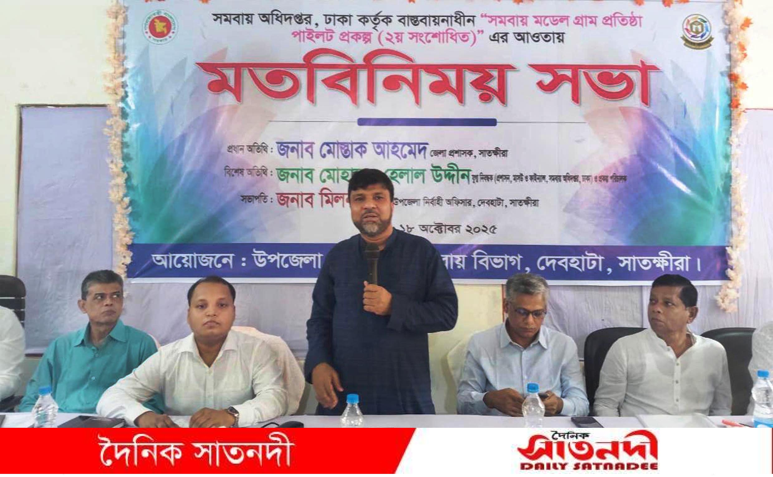 দেবহাটা প্রতিনিধি: দেবহাটার পারুলিয়ায় সমবায় অধিদপ্তর, ঢাকা কর্তৃক বাস্তবায়নাধীন “সমবায় মডেল গ্রাম প্রতিষ্ঠা পাইলট প্রকল্প (২য় সংশোধিত)” এর আওতায় মতবিনিময় সভা অনুষ্ঠিত হয়েছে। শনিবার (১৭ অক্টোবর) উপজেলা প্রশাসন ও উপজেলা সমবায় বিভাগের আয়োজনে পারুলিয়া ইউনিয়ন পরিষদে এ সভা অনুষ্ঠিত হয়। এতে দেবহাটা উপজেলা নির্বাহী অফিসার মিলন সাহার সভাপতিত্বে প্রধান অতিথি ছিলেন সাতক্ষীরা জেলা প্রশাসক মোস্তাক আহমেদ। বিশেষ অতিথি ছিলেন যুগ্ম নিবন্ধক (প্রশাসন, মাউস ও ফাইনাল, সময়ের অধদপ্তর, ঢাকা) ও প্রকল্প পরিচলক মোহাম্মদ হেলাল উদ্দীন। বক্তব্য দেন জেলা সমবায় কর্মকর্তা সেলিম হোসেন, জেলা বিএনপি’র সদস্য ও সাবেক উপজেলা বিএনপি’র সাবেক সদস্য সচিব মহিউদ্দীন সিদ্দিকী, জেলা জামায়াতের সহকারী সেক্রেটারী মাহাবুবুল আলম, উপজেলা জামায়াতের আমীর মাওলানা অলিউল ইসলাম, পারুলিয়া ইউপি চেয়ারম্যান ও উপজেলা বিএনপি’র সাবেক সাধারণ সম্পাদক গোলাম ফারুক বাবু, দেবহাটা প্রেসক্লাবের সভাপতি মীর খায়রুল আলম, ছাত্রপ্রতিনিধি ইমরান বাশার প্রমুখ। উপস্থিত ছিলেন দেবহাটা উপজেলা সহকারী কমিশনার (ভূমি) এম শরীফ খান, উপজেলা সমবায় কর্মকর্তা মনোজিত মন্ডল, উপজেলা যুবদলের যুগ্ম আহবায়ক রাজিব আহম্মেদ, উপজেলা মৎস্যদলের সাধারণ সম্পাদক শাফায়েত হোসেন বাচ্চু, পারুলিয়া ইউনিয়ন প্রশাসনিক কর্মকর্তা প্রবীর হাজারী সহ এলাকার গণ্যমান্য ব্যক্তিবর্গ, স্থানীয় জনপ্রতিনিধি ও গ্রামবাসী। উল্লেখ্য যে, পারুলিয়া গ্রামকে মডেল ও আদর্শ গ্রাম করার লক্ষে সমবায় অধিদপ্তরের উদ্যোগে “সমবায় মডেল গ্রাম প্রতিষ্ঠা পাইলট প্রকল্প” বাস্তবায়ন করা হবে। এতে গ্রামভীত্তিক সমবায় প্রতিষ্ঠার মাধ্যমে এলাকার সকল শ্রেণির মানুষের জীবনমান উন্নয়ন করা হবে বলে জানানো হয় সভায়।