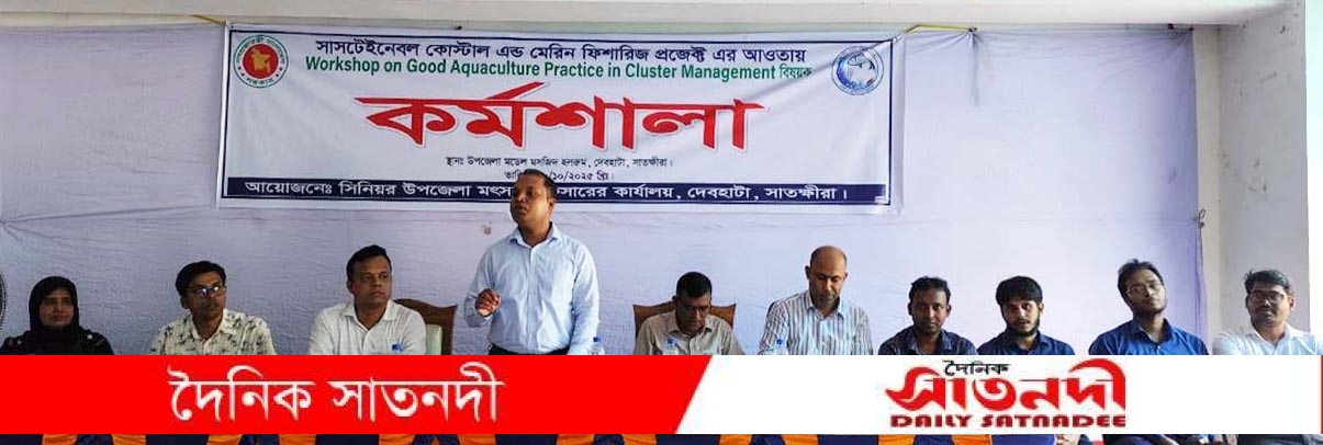 দেবহাটা প্রতিনিধি: দেবহাটায় সাসটেইনেবল কোস্টাল এন্ড মেরিন ফিসারিজ প্রজেক্টের আওতায় কর্মশালা অনুষ্ঠিত হয়েছে। মঙ্গলবার (২৮ অক্টোবর) উপজেলা মজেল মসজিদের হলরুমে সিনিয়র উপজেলা মৎস্য অফিসারের কার্যালয়ের আয়োজনে এ কর্মশালা অনুষ্ঠিত হয়। এতে সিনিয়র উপজেলা মৎস্য অফিসারের সভাপতিত্বে প্রধান অতিথি ছিলেন উপজেলা নির্বাহী অফিসার মিলন সাহা। অন্যান্যদের মধ্যে উপস্থিত ছিলেন উপজেলা কৃষি কর্মকর্তা শওকত ওসমান, প্রাণীসম্পদ কর্মকর্তা ডা. সাজেদুল ইসলাম, উপজেলা সমাজসেবা কর্মকর্তা তরিকুল ইসলাম, মহিলা বিষয়ক কর্মকর্তা নাসরিন জাহান, উপজেলা শিক্ষা কর্মকর্তা ইদ্রিস আলী, উপজেলা একাডেমিক সুপারভাইজার মিজানুর রহমান, উপজেলা বিআরডিপি কর্মকর্তা সন্দীপ মন্ডল, আনসার ভিডিপি কর্মকর্তা আসলতা খাতুন, দেবহাটা প্রেসক্লাবের সভাপতি মীর খায়রুল আলম, দেবহাটা রিপোর্টাস ক্লাবের সভাপতি আরকে বাপ্পা, মেরিন ফিসারিজ কর্মকর্তা সাজ্জাদ হোসেন সহ বিভিন্ন এলাকার মৎস্যচাষি ও উদ্যোক্তারা। এসময় উত্তম পদ্ধতিতে নিরাপদ মাছ উৎপাদন সংক্রান্ত বিষয়ে আলোচনা করা হয়। এছাড়া রাস্তার পাশের মৎস্যঘেরে পাড় নির্মানের বিষয়ে সচেতন করা হয়।