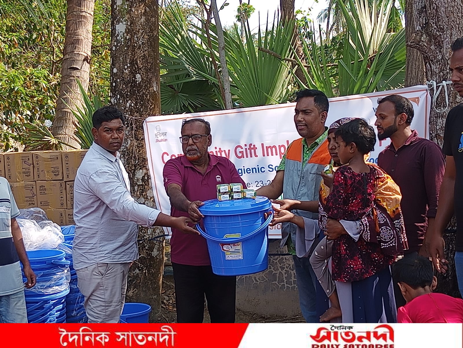 ৮ মার্চ, ২০২৬ তারিখে সাতক্ষীরার দেবহাটা উপজেলার নোয়াপাড়া ইউনিয়নে আজ নিরাপদ পানি সংরক্ষণ ও ব্যক্তিগত স্বাস্থ্যবিধি নিশ্চিতকরণের লক্ষ্যে ৮০০ টি পরিবারে, কমিউনিটি গিফটের মাধ্যমে বালতি ও সাবান বিতরণ করা হয়েছে। ওয়ার্ল্ড ভিশন বাংলাদেশ-এর অর্থায়নে এবং বেসরকারি উন্নয়ন সংস্থা সুশীলন-এর বাস্তবায়নে ‘দেবহাটা এরিয়া প্রোগ্রাম’-এর আওতায় কমিউনিটি গিফটের বালতি ও সাবান বিতরণ কর্মসূচি পরিচালিত হয়। উপজেলার নোয়াপাড়া ইউনিয়নের ছুটিপুর,নাংলা নওয়াপাড়া,ঢেপুখালি ও আটশত বিঘা গ্রামের ৮০০টি পিছিয়ে পড়া পরিবারের মাঝে এই সামগ্রীগুলো তুলে দেওয়া হয়। প্রতিটি পরিবারকে একটি করে মানসম্মত বালতি এবং জীবনরক্ষাকারী ৬টি করে সাবান প্রদান করা হয়েছে, যা তাদের দৈনন্দিন জীবনে বিশুদ্ধ পানি পান এবং পরিষ্কার-পরিচ্ছন্নতা বজায় রাখতে সহায়ক হবে।