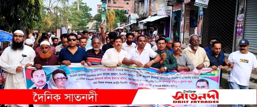 পাইকগাছা প্রতিবেদক : খুলনা জেলা বিএনপির মনিরুল হাসান বাপ্পি কে ভারপ্রাপ্ত সদস্য সচিব করায় বিএনপির ভারপ্রাপ্ত চেয়ারম্যান তারেক রহমান ও মহাসচিব মির্জা ফখরুল ইসলাম সহ কেন্দ্রীয় ও জেলা নেতৃবৃন্দের প্রতি অভিনন্দন জানিয়ে পাইকগাছায় উপজেলা বিএনপির উদ্যোগে আনন্দ মিছিল, লিফলেট বিতরণ ও গণসংযোগ অনুষ্ঠিত হয়েছে। রবিবার বিকালে উপজেলা বিএনপির অস্থায়ী কার্যালয়ে থেকে উপজেলা বিএনপির সম্মেলন প্রস্তুতি কমিটির আহ্বায়ক ও খুলনা- ৬ (কয়রা -পাইকগাছা) সংসদীয় আসনে ধানের শীষের মনোনয়ন প্রত্যাশী ডা. আব্দুল মজিদ এর সভাপতিত্বে একটি বর্ণাঢ্য মিছিলে প্রধান সড়ক প্রদক্ষিণ করে বাজারে চৌরাস্তা মোড়ে পথসভা অনুষ্ঠিত হয়। পথসভা শেষে তিনি দলীয় নেতা-কর্মীদের সাথে নিয়ে ৩১ দফা লিফলেট বিতরণ ও গণসংযোগ করে। এসময় জেলা বিএনপির সদস্য অ্যাড. আব্দুস সাত্তার ও সাবেক ইউপি চেয়ারম্যান শাহাদাৎ হোসেন ডাবলু, উপজেলা যুগ্ম আহ্বায়ক মো. আবুল হোসেন, সদস্য তুষার কান্তি মন্ডল, বিএনপি নেতা আব্দুল মজিদ গোলদার,