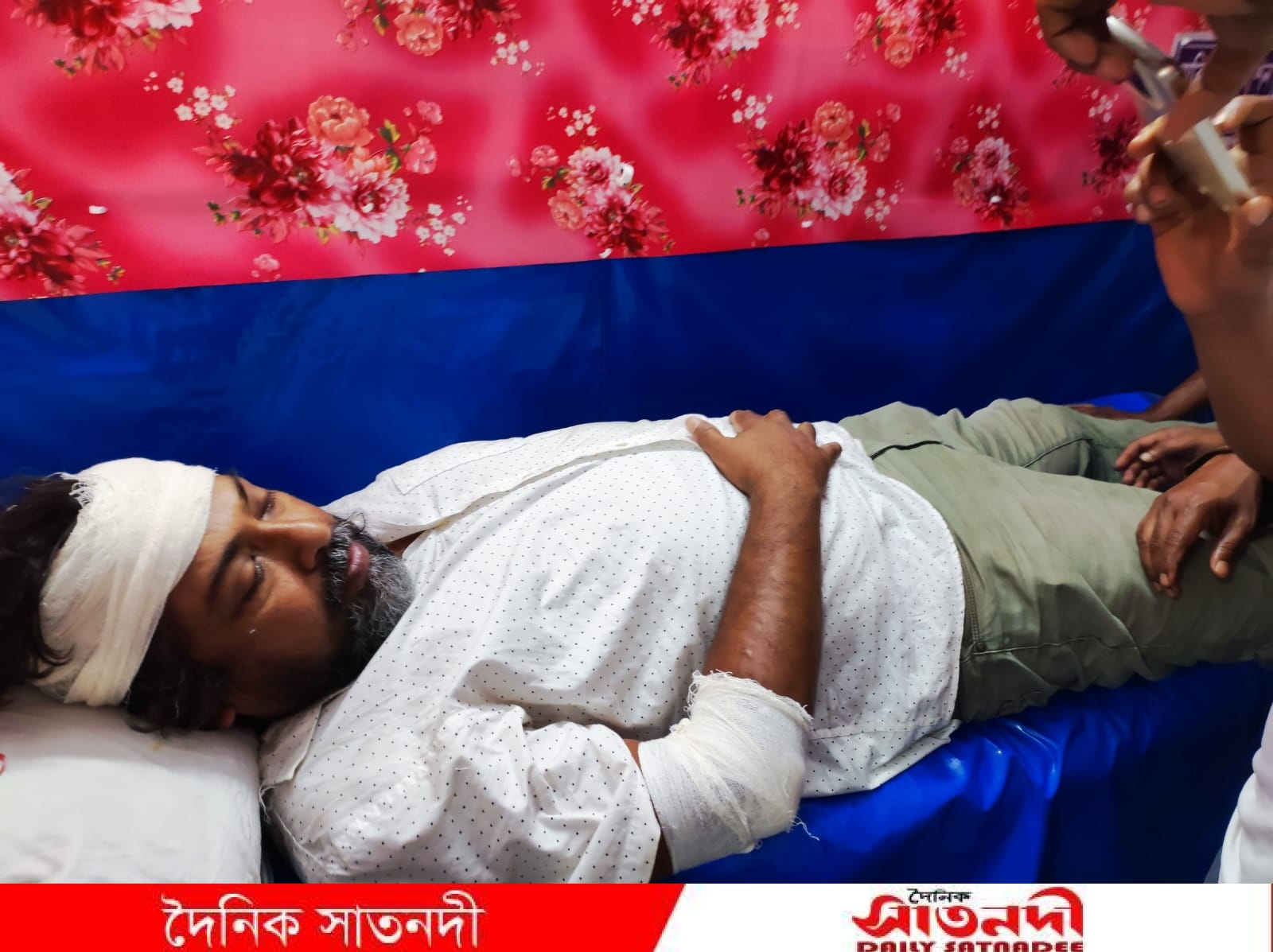 আহত সভাপতিকে তাৎক্ষণিকভাবে শ্যামনগর উপজেলা স্বাস্থ্য কমপ্লেক্স-এ নেওয়া হয়। জরুরি বিভাগের কর্তব্যরত চিকিৎসক ডা. শাকির সাংবাদিকদের জানান, “তার মাথার বাম পাশে শক্ত কিছু দিয়ে গুরুতর আঘাত করা হয়েছে। শরীরের বিভিন্ন অংশে হাতুড়ি ও লোহার রডের আঘাতের চিহ্ন রয়েছে। প্রয়োজনীয় চিকিৎসা দেওয়া হচ্ছে।”