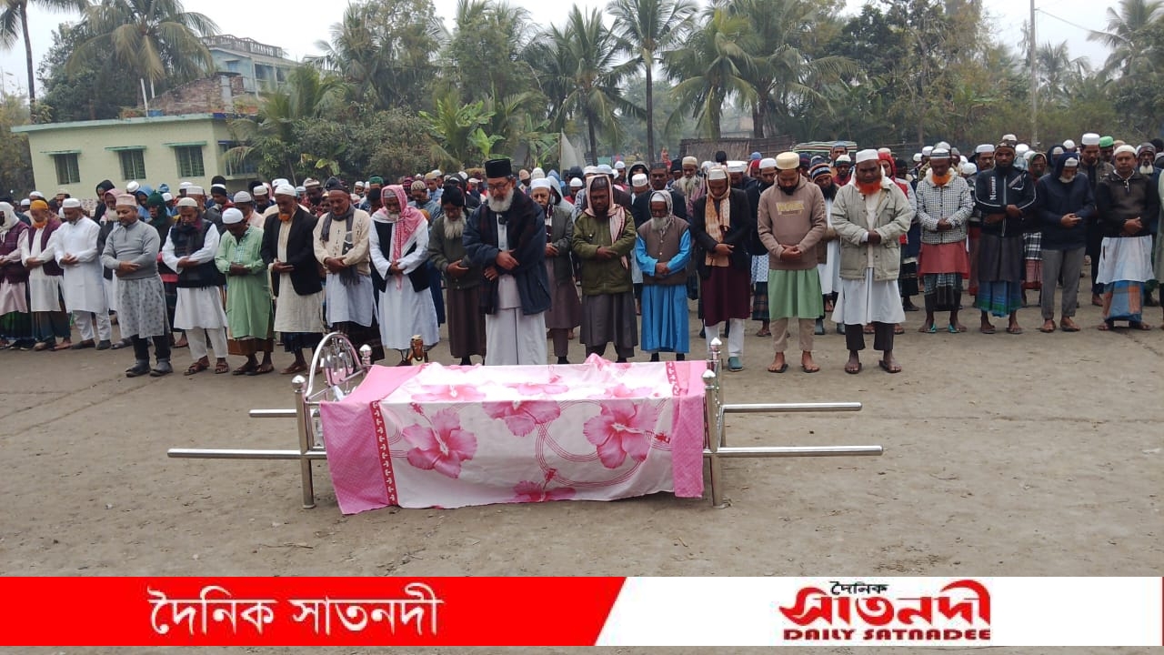 আব্দুর রাজজাক : আশাশুনি উপজেলা শ্রীউলা ইউনিয়নে মহিষকুড় ৪নং ওয়ার্ডের সাবেক ইউপি সদস্য মতিয়ার রহমান মোল্ল্যা(৯৫)জানাজা নামাজ ও দাফন সম্পন্ন হয়েছে।২৯ডিসেম্বর সোমবার ভোর ৪.৩০মিনিটে অসুস্থ জনিত কারণে মৃত্যুবরণ করেন। (ইন্নালিল্লাহি ওয়া ইন্না ইলাইহি রাজিউন)। আজ জোহর বাদ মোল্ল্যা বাড়ি খামার মাঠে মরহুম জানাজা নামাজ অনুষ্ঠিত হয়। উক্ত জানাজার নামাজে ইমামতি করেন আশাশুনি, কালিগঞ্জ ৩আসনে জামায়াত মনোনীত এমপি পদপ্রার্থী মুফতি মুহাদ্দিস মাওলানা রবিউল বাশার।জানাজা নামাজে আরো উপস্থিত ছিলেন সাবেক এমপি মরহুম মাওলানা রিয়াছাত আলী পুত্র মাওলানা নূরুল আবছার মুরতাজা,শ্রীউলা ইউনিয়নে জামায়াতে আমীর ও চেয়ারম্যান পদপ্রার্থী মাওলানা লুৎফর রহমান,ইউনিয়ন সেক্রেটারি শাহীন হোসেন, শ্রমিক নেতা আবারুল ইসলাম,মাওলানা আব্দুর রহমান,হাফেজ জুবায়ের সহ অনেক রাজনৈতিক ব্যক্তিবর্গ। তিনি ৩ পুত্র ৩ কন্যাসহ অসংখ্য আত্মীয়-স্বজন রেখে গিয়েছেন। জানাজার শেষে ত পারিবারিক কবরস্থানে দাফন সম্পন্ন করা হয়।