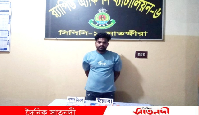 অনলাইন ডেস্ক: সাতক্ষীরা শহরের পলাশপুল (মধুমালার ডাংরি) এলাকায় অভিযান চালিয়ে ২৫২০ পিস ইয়াবাসহ ইয়াসিন আরাফাত নামে এক মাদক ব্যবসায়ীকে গ্রেপ্তার করেছে র‍্যাপিড অ্যাকশন ব্যাটালিয়ন (র‍্যাব)।শুক্রবার (১৭ এপ্রিল) দিবাগত রাত প্রায় ২টার দিকে গোপন সংবাদের ভিত্তিতে র‍্যাবের একটি আভিযানিক দল ওই এলাকায় অভিযান পরিচালনা করে। দীর্ঘদিন ধরে নজরদারিতে থাকা ইয়াসিন আরাফাতকে তার নিজ আস্তানায় মাদক বেচাকেনার সময় হাতেনাতে আটক করা হয়।