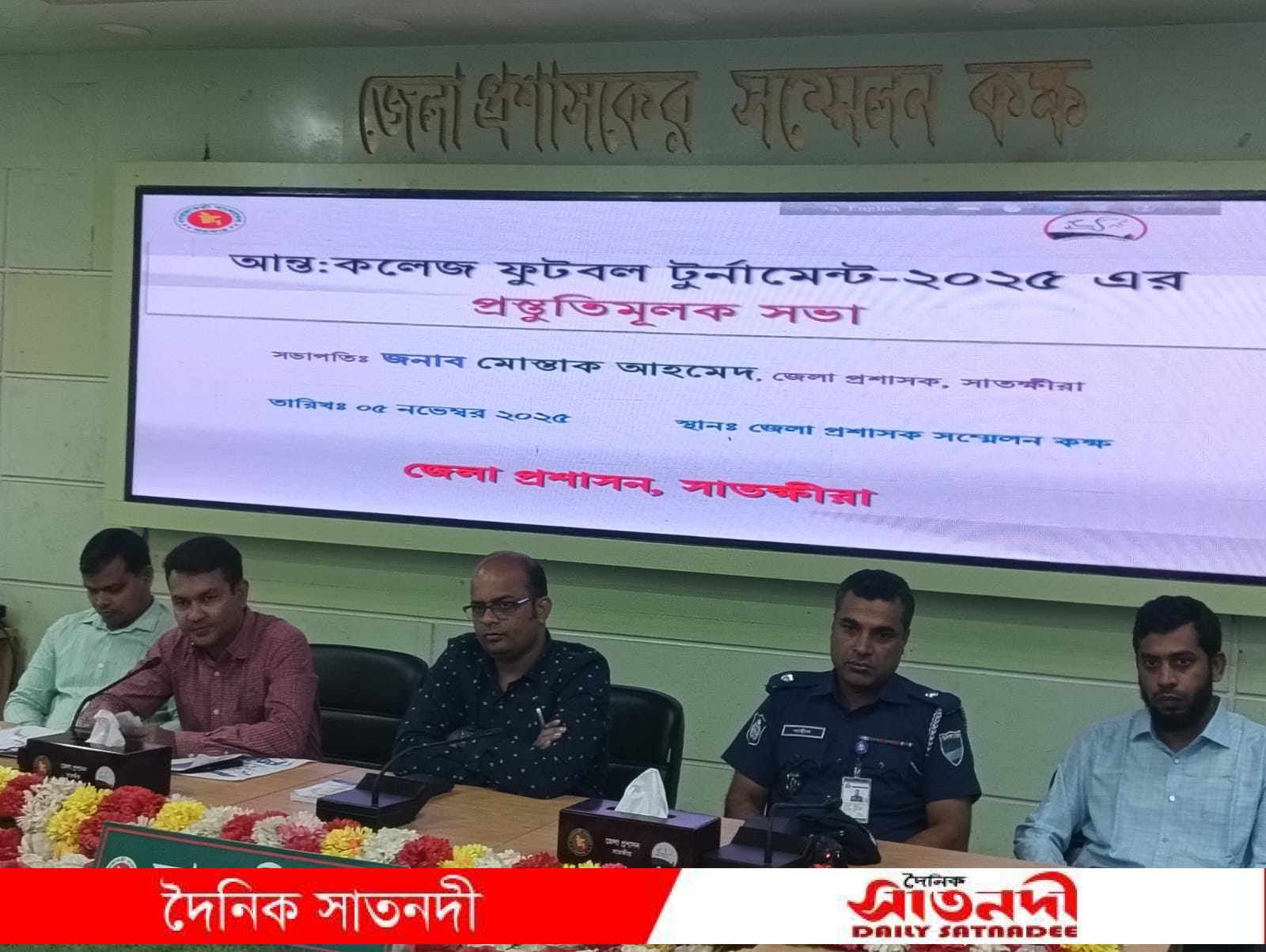 সাতক্ষীরা প্রতিনিধি: সাতক্ষীরায় আন্তঃকলেজ ফুটবল টুর্নামেন্ট-২০২৫ উপলক্ষে প্রস্তুতিমূলক সভা অনুষ্ঠিত হয়েছে। বুধবার (৫ নভেম্বর) বিকালে সাতক্ষীরা জেলা প্রশাসকের সম্মেলন কক্ষে এ সভা অনুষ্ঠিত হয়।