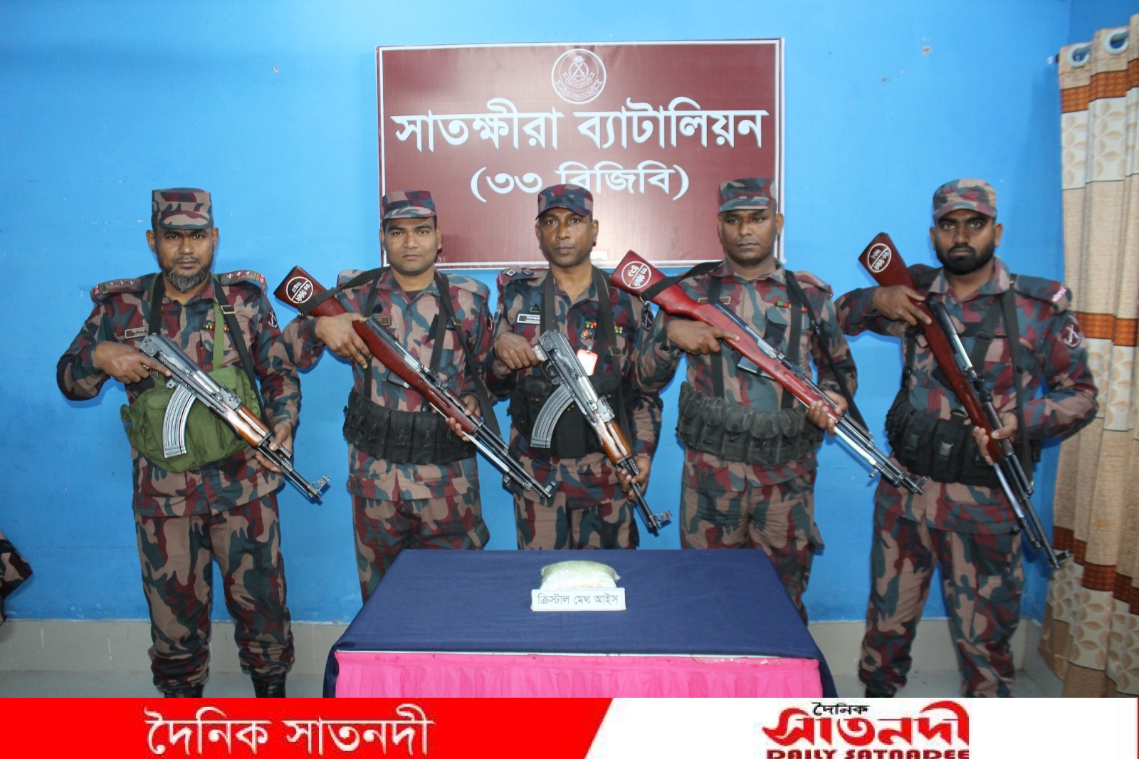 গত ২৫ ফেব্রুয়ারি ২০২৬ তারিখ সাতক্ষীরা ব্যাটালিয়ন (৩৩ বিজিবি) সদর হতে আনুমানিক ১০ কিঃমিঃ উত্তর দিকে আখরাখোলা (সাতক্ষীরা সদর) নামক এলাকায় সাতক্ষীরা ব্যাটালিয়নের অধিনায়ক লেঃ কর্নেল কাজী আশিকুর রহমান, ওএসপি, পিএসসি এর সার্বিক দিক নির্দেশনায় সাতক্ষীরা ব্যাটালিয়ন একটি চৌকষ আভিযানিক দল মাদক বিরোধী বিশেষ অভিযান পরিচালনা করে ০১ কেজি ক্রিস্টাল মেথ আইস জব্দ করা হয়। যার আনুমানিক সিজার মূল্য ৫,০০,০০,০০০/- (পাঁচ কোটি) টাকা।