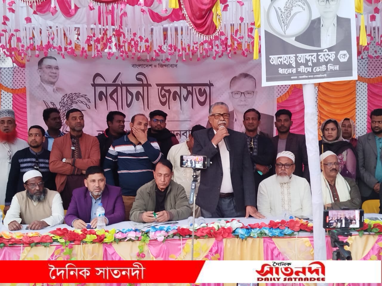আসন্ন ত্রয়োদশ জাতীয় সংসদ নির্বাচনে সাতক্ষীরা-২ (সদর-দেবহাটা) আসনে বাংলাদেশ জাতীয়তাবাদী দল (বিএনপি) মনোনীত ধানের শীষের সংসদ সদস্য পদপ্রার্থী আলহাজ্ব মোঃ আব্দুর রউফের বিশাল নির্বাচনী জনসভা অনুষ্ঠিত হয়েছে।