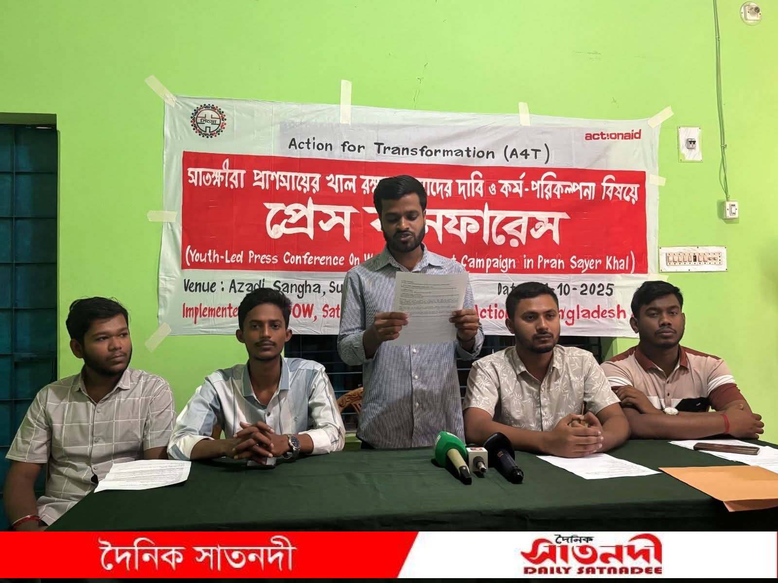 সাতক্ষীরার প্রাণসায়ের খাল রক্ষা, জলাবদ্ধতা নিরসন ও পানির অধিকার নিশ্চিতকরণে দাবিসহ কর্মপরিকল্পনা ঘোষণা করেছে সাতক্ষীরা ইয়ুথ এলায়েন্স।
