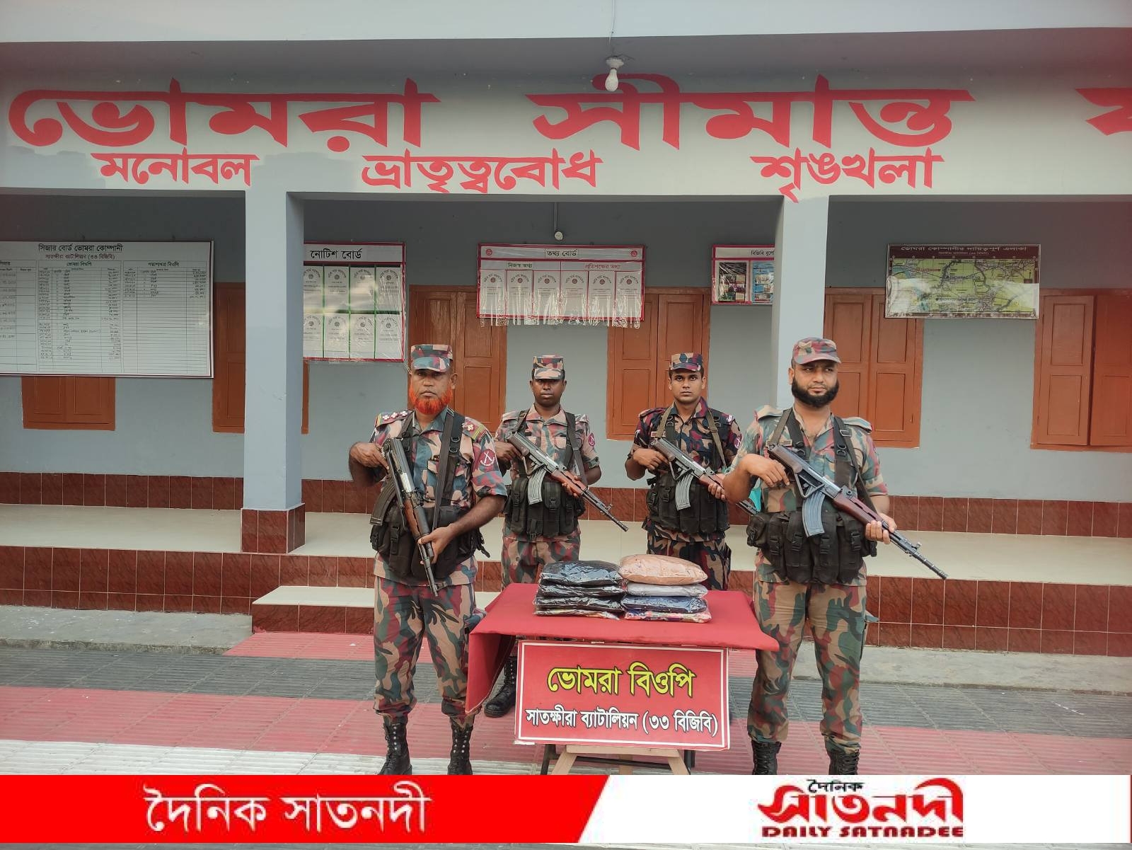 গোয়েন্দা তথ্যের ভিত্তিতে ভোমরা বিওপির এর আভিযানিক দল মেইন পিলার-২/৩ এস হতে ২৫০ গজ বাংলাদেশের অভ্যন্তরে সাতক্ষীরা সদর থানাধীন ঘোষপাড়া নামক স্থান হতে ২৮,০০০/- ভারতীয় বোরকা আটক করে। কালিয়ানী বিওপির এর আভিযানিক দল মেইন পিলার-৭/৬৫ এস হতে ২০০ গজ বাংলাদেশের অভ্যন্তরে সাতক্ষীরা সদর থানাধীন কালিয়ানী নামক স্থান হতে ৭০,০০০/- ভারতীয় ঔষধ আটক করে। কাকাডাঙ্গা বিওপির পৃথক তিনটি বিশেষ আভিযানিক দল সীমান্ত পিলার-১৩/৩ এস এর ৪, ৬ ও ৭ আরবি হতে আনুমানিক ৩০০-৪০০ গজ বাংলাদেশের অভ্যন্তরে কলারোয়া থানাধীন গেরাখালি, কেরাগাছি ও রাজ্জাকের মোড় নামক স্থান হতে ৪,২০,০০০/- টাকা মূল্যের ভারতীয় ঔষধ ও শাড়ি আটক করে। মাদরা বিওপির পৃথক তিনটি বিশেষ আভিযানিক দল সীমান্ত পিলার-১৩/৩ এস এর ৭, ৮ ও ৯ আরবি হতে আনুমানিক ৩০০-৪০০ গজ বাংলাদেশের অভ্যন্তরে কলারোয়া থানাধীন কলাবাড়ি ও শশ্বানঘাট ও চান্দা নামক স্থান হতে ৩,১১,৫০০/- টাকা মূল্যের ভারতীয় ঔষধ ও শাড়ি আটক করে। এছাড়াও, হিজলদী বিওপির বিশেষ আভিযানিক দল সীমান্ত পিলার-১৩/৪ এর হতে আনুমানিক ২০০ গজ বাংলাদেশের অভ্যন্তরে কলারোয়া থানাধীন গোয়ালপাড়া নামক স্থান হতে ৭০,০০০/- টাকা মূল্যের ভারতীয় ঔষধ আটক করে।