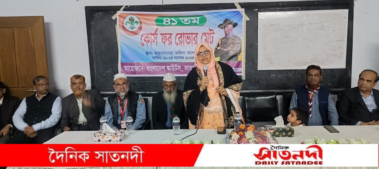 সাতক্ষীরা: বাংলাদেশ স্কাউটস সাতক্ষীরা জেলা রোভারের ৪১ তম কোর্স ফর রোভার মেট এর মহা তাঁবু জলসা অনুষ্ঠিত হয়েছে। রবিবার রাত ৮ টায় ছফুরননেছা মহিলা কলেজে তাঁবু জলসা উদ্বোধন করেন সাতক্ষীরা জেলা রোভারের সভাপতি ও নবাগত জেলা প্রশাসক মিস্ আফরোজা আখতার। সভাপতিত্ব করেন সাতক্ষীরা জেলার কমিশনার ও ছফুরননেছা মহিলা কলেজের অধ্যক্ষ রেজাউল করিম। কোর্স এর কাউন্সিলর ইয়াছিন আলী ও জেলা রোভার এর রোভার নেতা প্রতিনিধি আকুঞ্জি সেলিম রেজার পরিচালনায় অনুষ্ঠানে উপস্থিত ছিলেন সাতক্ষীরা সরকারি কলেজের অধ্যক্ষ প্রফেসর আব্দুল হাসেম, সরকারি মহিলা কলেজের অধ্যক্ষ প্রফেসর বাসুদেব বিশ্বাস, সরকারি খান বাহাদুর আহছান উল্লাহ কলেজের অধ্যক্ষ প্রফেসর অলোক কুমার সরকার, আশাশুনি সরকারি কলেজের অধ্যক্ষ নজরুল ইসলাম, কুমিরা মহিলা কলেজের অধ্যক্ষ লুৎফুন আরা জামান, জেলা রোভার এর সম্পাদক আবু তালেব, কোষাধ্যক্ষ কাজী আব্দুস সবুর, ডি আর এস এল পবিত্র কুমার দাস, রোভার নেতা যথাক্রমে জাহীদ হোসেন, আকবর হোসেন, তানভীর আহমেদ, অংকর কুমার মন্ডল, আবুল বাশার পল্টু, ফারহা দিবা খান সাথি, মফিজুর রহমান, মহাসিন হোসেন, দিনেশ কুমার, ফাহমিদা খাতুন, শিরিন সিদ্দিকা, নাজমুল হক, আব্দুল্লাহ আল মামুন, সিনিয়র রোভার মেট প্রতিনিধি আল শাহরিয়ার অনিক, রওনিক ই আহমেদ প্রাপ্তি প্রমুখ। ক্যাম্পে সাতক্ষীরা জেলার বিভিন্ন কলেজের প্রায় শতাধিক রোভার এবং গার্ল ইন রোভার অংশগ্রহণ করেন।