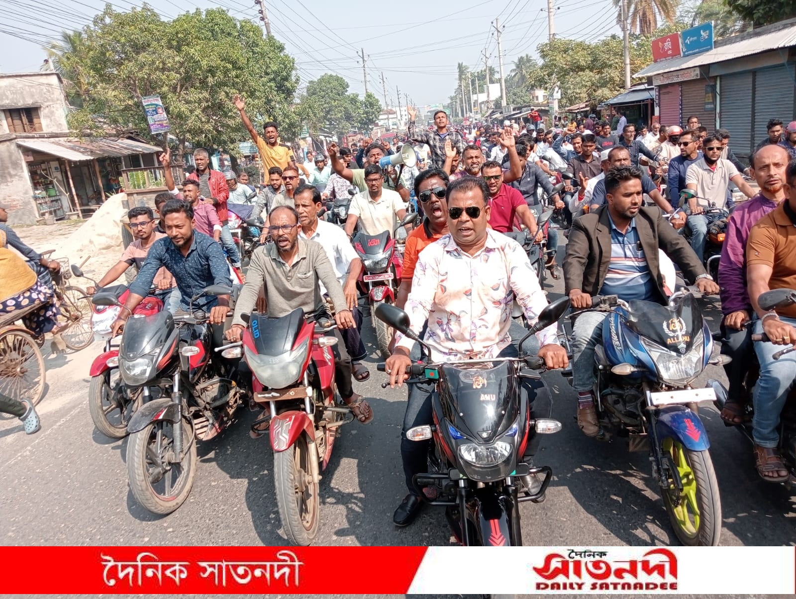 মোঃ মোকাররাম বিল্লাহ ইমন: সাতক্ষীরা-২ (সাতক্ষীরা সদর-দেবহাটা) আসনে বিএনপি মনোনীত প্রার্থী আব্দুর রউফের মনোনয়ন বাতিল এবং সাতবারের চেয়ারম্যান আব্দুল আলিমকে ধানের শীষের প্রার্থী ঘোষণার দাবিতে বিশাল মোটরসাইকেল র্যালি অনুষ্ঠিত হয়েছে। রবিবার (২৩ নভেম্বর) সকালে বিনেরপোতা জিরোপয়েন্ট থেকে র্যালিটি বের হয়ে খুলনা রোড মোড় চত্বরে সমাবেশে মিলিত হয়।