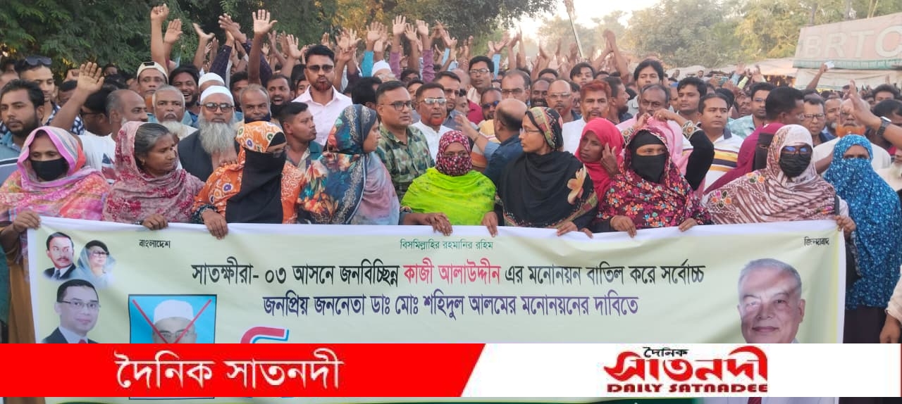 স্টাফ রিপোর্টার: সাতক্ষীরা-৩ (কালিগঞ্জ-আশাশুনি) আসনে বিএনপির কেন্দ্রীয় নির্বাহী কমিটির সদস্য ও ‘গরিবের ডাক্তার’ খ্যাত ডা. শহিদুল আলমকে মনোনয়ন না দেওয়ায় উত্তাল হয়ে উঠেছে এলাকা। শনিবার (০৮ নভেম্বর) ৫ম দিনে কালিগঞ্জ বাস টার্মিনাল থেকে একটি বিক্ষোভ মিছিল প্রধান সড়ক প্রদক্ষিন করে বিএনপির কার্যালয়ে হাজির হয়। পরে সেখানে অবস্থান কর্মসূচি পালন করেন তার কর্মী-সমর্থকরা। এতে বিএনপি, অঙ্গ ও সহযোগী সংগঠনের বিভিন্ন পর্যায়ের নেতাকর্মী ছাড়াও সাধারণ মানুষ অংশ নেন। বিক্ষোভকারীদের মুখে ছিল নানা স্লোগান ‘গরিবের ডাক্তারকে চাই’, ‘হটাও কাজী, বাঁচাও ধানের শীষ’। এতে কালিগঞ্জের আশপাশের এলাকা স্লোগানে মুখর ও বিক্ষোভে উত্তপ্ত হয়ে ওঠে। বক্তারা অভিযোগ করে বলেন, ডা. শহিদুল আলম হচ্ছেন জনমানুষের নেতা, গরিবের ডাক্তার। তাকে মনোনয়ন না দিলে সাতক্ষীরা-৩ আসনটি বিএনপির হাতছাড়া হবে। তারা কেন্দ্রীয় সিদ্ধান্ত দ্রুত পুনর্বিবেচনা করে কাজী আলাউদ্দীনের মনোনয়ন বাতিল ও ডা. শহিদুল আলমের মনোনয়ন দেওয়ার দাবি জানান। সমাবেশে নেতাকর্মীরা বলেন, আমাদের ৭ দিনের ধারাবাহিক কর্মসূচি পালন করা হবে । দাবি না মানা পর্যন্ত প্রতিদিন কর্মসূচি চলবে এবং প্রয়োজন হলে গুলশানে বিএনপি চেয়ারপারসনের কার্যালয় অভিমুখে যাত্রা করবেন বলে জানান তারা। ৫ম দিনের কর্মসূচিতে উপস্থিত থেকে বক্তব্য দেন জেলা বিএনপি’র সদস্য শেষ নুরুজ্জামান, কালিগঞ্জ উপজেলা বিএনপি’র যুগ্ম-সম্পদক ও ইউপি চেয়ারম্যান জাহাঙ্গীর আলম, কালিগঞ্জ উপজেলা যুবদলের আহবায়ক সোহেল আহম্মেদ, যুগ্ম-আহবায়ক কাজী রাব্বি, সদস্য সচিব আব্দুল আজিজ, কালিগঞ্জ উপজেলা স্বেচ্ছাসেবক দলের আহবায়ক সেলিম আহম্মেদ, সদস্য সচিব কাজী সোহেল, কালিগঞ্জ উপজেলা ছাত্রদলের আহবায়ক আবু ফরহাদ সাদ্দাম, সদস্য সচিব পারভেজ, কালিগঞ্জ উপজেলা শ্রমিক দলের আহবায়ক সেলিম হোসেন, কালিগঞ্জ উপজেলা তাঁতিদলের সভাপতি ফারুক হোসেন, জেলা হিন্দু, বৈদ্য, খ্রিস্টান কল্যাণ ফ্রন্টের সিনিয়র যুগ্ম-আহবায়ক মিলন সরকার প্রমুখ।