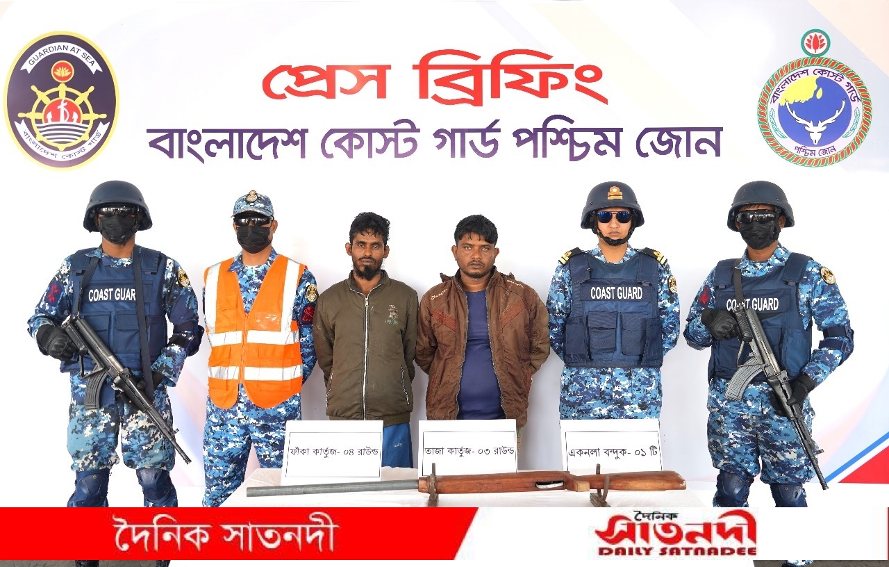 জিয়াউর রহমান শ্যামনগর থেকে: সুন্দরবনের দুর্ধর্ষ বনদস্যু করিম শরীফ বাহিনীর দুই সহযোগীকে হাতে নাতে আটক করেছে বাংলাদেশ কোস্টগার্ড। শনিবার (২৯ নভেম্বর) ভোর ৬ টায় গহিন সুন্দরবনের পশুর নদী সংলগ্ন ভাইজোড়া খাল এলাকায় কোস্ট গার্ড বেইস মোংলা ও স্টেশন হারবাড়িয়া সদস্যরা অভিযান চালিয়ে সুন্দরবনের দুর্ধর্ষ ডাকাত করিম শরীফ বাহিনীর ২ সহযোগীকে আটক করে। পরবর্তীতের তাদের দেওয়ার তথ্যের ভিত্তিতে ওই স্থান হতে ১ টি একনলা বন্দুক, ৩ রাউন্ড তাজা কার্তুজ ও ৪ রাউন্ড ফাঁকা কার্তুজ উদ্ধার করা হয়।